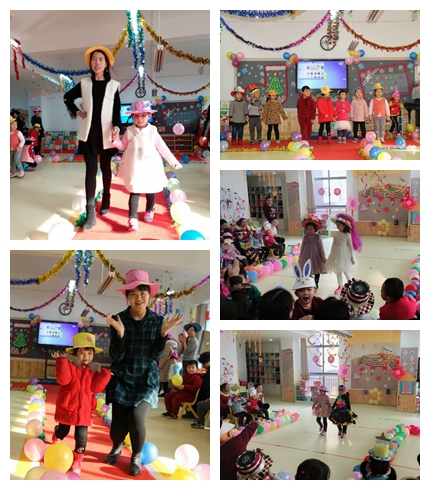 中班年级组以《节日快乐帽》为主题活动。家长和孩子们一起动手、动脑,利用带来的各种废旧材料变废为宝共同制作庆祝节日的帽子、配饰,并通过“T”台走秀的方式展示自己的作品。
